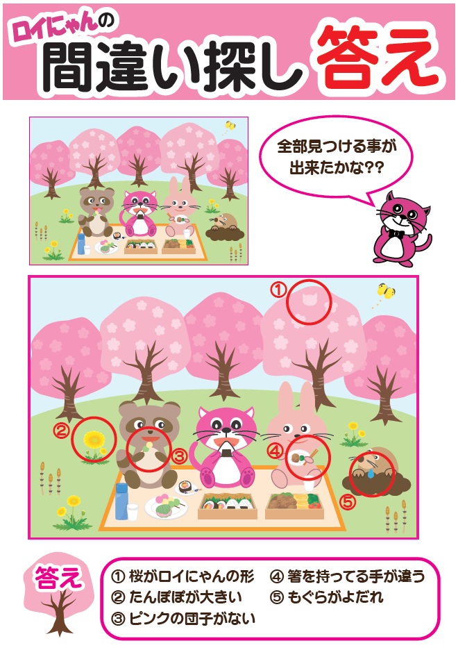 3月に開催しました『ロイにゃんの間違い探し』の答え合わせです!